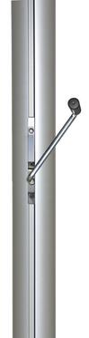 ∙ Aus korrosionsfreiem Hartaluminium ∙ Silberfarbig eloxiert - fahnentuchschonend ∙ Mit vollständig innenliegender Hissvorrichtung ∙ Betätigung der Hissvorrichtung erfolgt mit einer Spezialkurbel, wodurch eine gute Sicherung gegen die Bedienung durch Unbefugte und Diebstahl der Fahne gegeben ist ∙ Fahnentuch wird an verstellbaren Kunststoffgleitern, die im Mast geführt werden, befestigt ∙ Serienmäßig mit abschließbarer Hissvorrichtung ∙ Inklusive Bodenhalterung mit Zentrierkeil