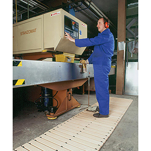 Bodenrost, Holzlaufrost aus abgelagertem Buchenholz, inkl. kunststoffummanteltem Stahlseil und T-Gummipuffern, BxH 1400x36 mm, Gummilagerung: 3-fach (Bestellung 1 mtr = 1 Stück)
