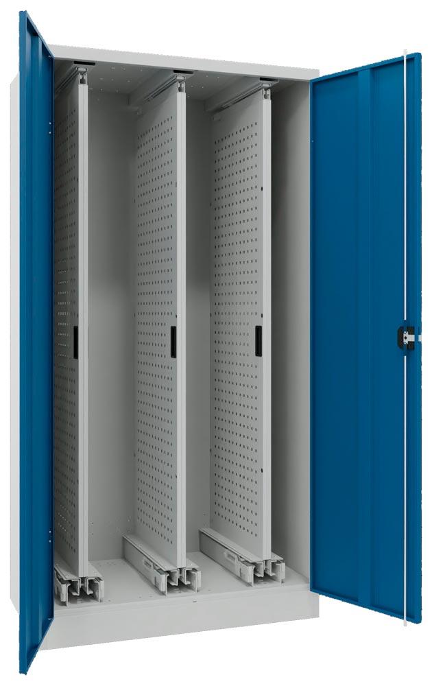 Vertikalauszugschrank, 3 Auszüge mit Lochplatten