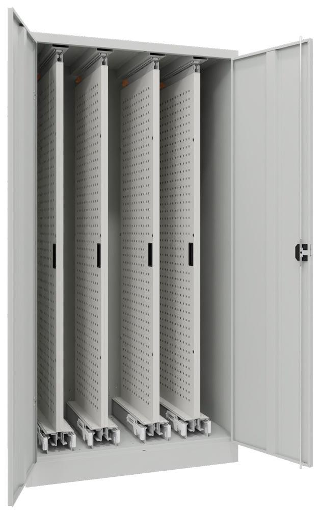 Vertikalauszugschrank, 4 Auszüge mit Lochplatten