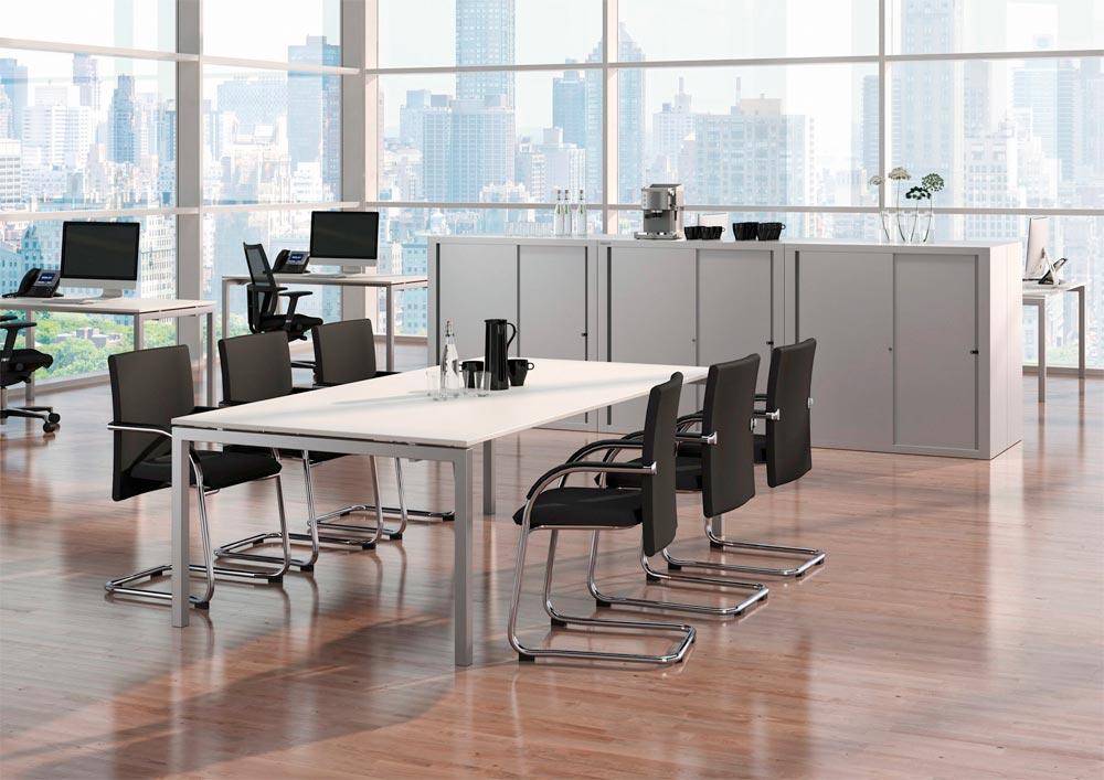 Schiebetürenschrank, BxTxH 1200x430x1980 mm, 5 OH, 4 Fachböden, Korpus/Türen verkehrsweiß