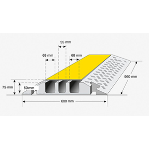 Produktinformationen "Kabelbrücke mit 3 Kanälen, Farbe schwarz-gelb, Hartgummimischung mit Deckel BxTxH 960x600x75 mm"