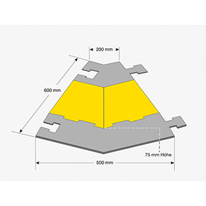 Produktinformationen "Kabelbrücke-Winkelstück 45 Grad, Farbe schwarz-gelb, rechts, Hartgummimischung mit Deckel, BxTxH 500/200x600x75 mm"