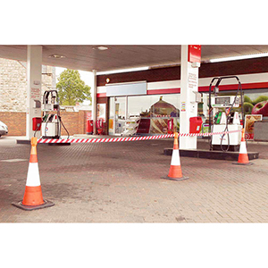 ∙ Als Aufsatz für Warnkegel ∙ Zur Sicherung von Baustellen, Tankstellen oder Werksgeländen ∙ Gehäuse aus robustem, orangefarbenen Hartplastik ∙ Gurtfarbe rot/weiß diagonal