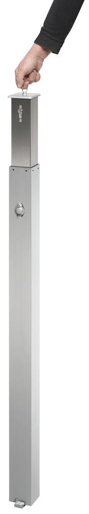 Edelstahlpfosten, mit Bodenhülse zum Einbetonieren, manuell versenkbar, flache Abdeckung, mit PZ-Schloss, 70x70mm, Höhe ü. Flur 900 mm