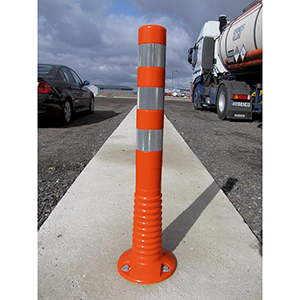 ∙ Schützt Menschen und schont Fahrzeuge · Selbstaufrichtender Sperrpfosten, nachgiebig und flexibel wie Gummi · Extrem robust, Material Polyurethan · Kann am Boden verschraubt werden, kein Ausbrechen der Befestigung möglich · Retroreflektierende Streifen für gute Nachtsichtbarkeit · In unterschiedlichen Höhen und Farbvarianten erhältlich ∙ Ohne Befestigungsmaterial ∙ Rohr-Ø 80 mm ∙ Fuß-Ø 200 mm