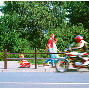 Stilpoller, Stadtpoller Wien aus 2,9 mm Stahl, feuerverzinkt und RAL 8019 antikbraun beschichtet, Gesamtlänge 1250 mm, zum Einbetonieren