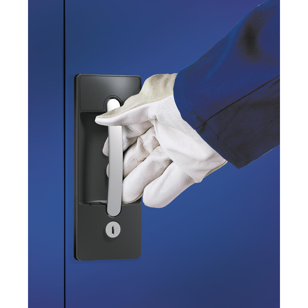 Akku Ladeschrank, Sichtfenster-Türen,BxTxH 930x500x1950 mm, RAL 7035/5010 mit 3 verzinkten Einlegeböden