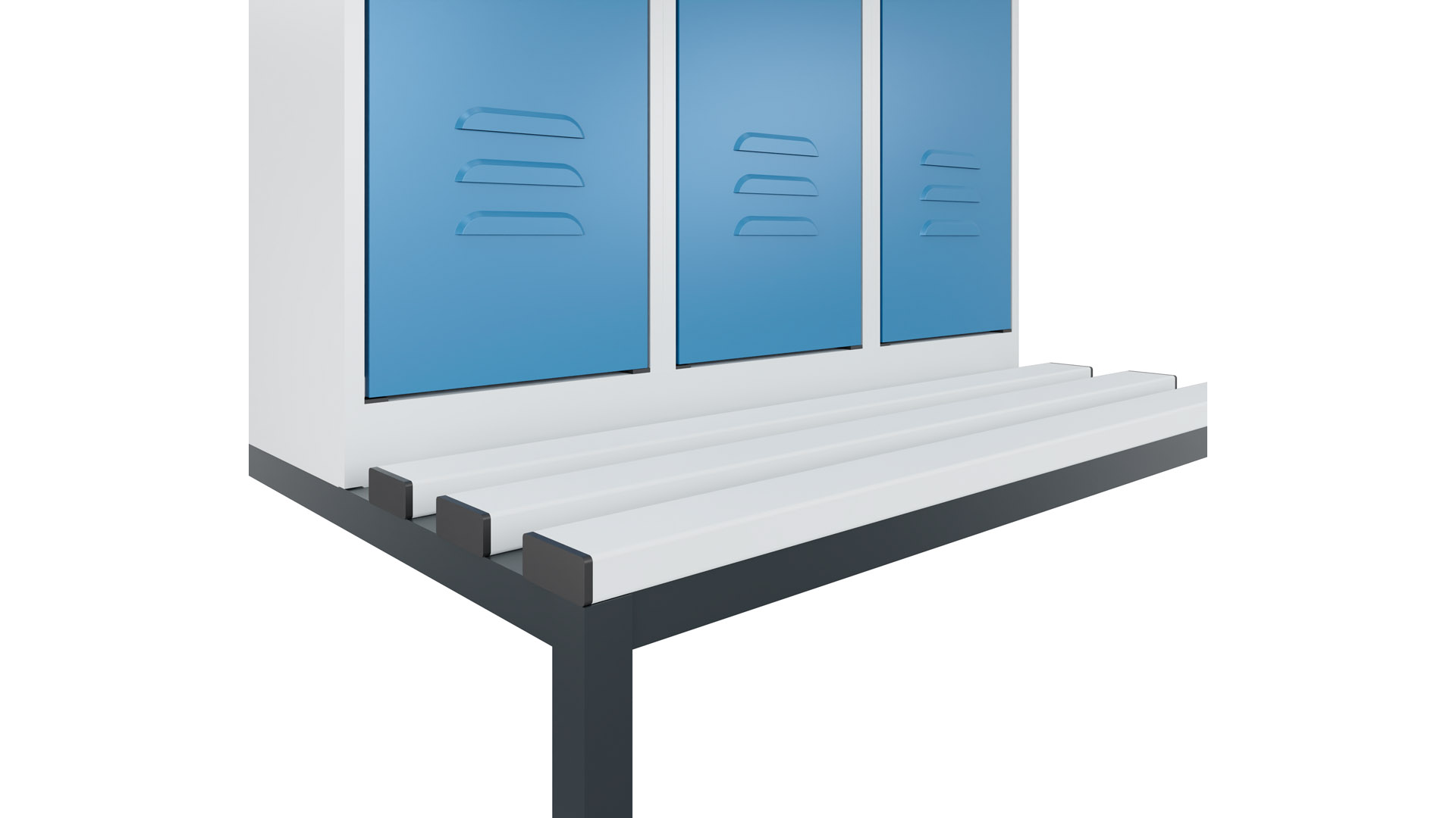 ∙ Stabile Stahlkonstruktion mit hochwertiger Einbrennbeschichtung ∙ Verstärkte Türen mit Anschlagsdämpfer für geräuscharmes Schließen ∙ Designlochbilder für optimale Belüftung ∙ Stabile Garderobenstange mit 3 verdrehsicherem Doppel-Schiebehaken ∙ Glatter Abteilboden für einfaches Auskehren ∙ Fußteil und Schrankboden serienmäßig verzinkt für erhöhten Korrisionschutz ∙ Innovative Kant- und Biege-Geometrien, sowie Materialdopplungen ∙ Fest verschweißter Ablageboden pro Abteil ∙ Optimierte Lüftungsöffnungen im Abteil · Pro Abteil 1 Ablageboden · Korpus T 500 mm · Wahlweise 2-, 3- oder 4 Abteile · Sitzbankgestell H 420 mm · Sitzhöhe 450 mm, Sitztiefe 315 mm · Bank und Schrank werden zur einfachen Selbstmontage separat geliefert · Schuhroste sowie Kunststoff-SItzleisten in schwarzgrau oder weiß sind auf Anfrage erhältlich