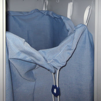 Eigenschaften:· Korpusfarbe: Lichtgrau (RAL 7035)· Frontfarbe: Enzianblau (RAL 5010)· Außenmaße: 1.850 x 400 x 500 mm (H x B x T)· Stabile Stahlblechkonstruktion· Mit Sockel· Verschließbare Tür mit Einwurfklappe· Ausführung mit Zylinderkopf· Einwurfklappe: 235 x 220 mm (H x B)· 7 Haken zur Befestigung von Wäschesäcken· Oberfläche pulverbeschichtetWäschesack *:· 1.280 x 500 x 400 mm· 7 Aufhängeschlaufen· Kordelverschluss* Der Wäschesack ist nicht im Lieferumfang enthalten und kann einzeln oder als Set mit 3 Stück bestellt werden.WäschesammelschränkeDie von uns angebotenen Schränke sind in Deutschland hergestellte Metallschränke zur Sammlung von Wäsche. Sie sind ausgestattet mit einer verschließbaren Tür mit Einwurfklappe.