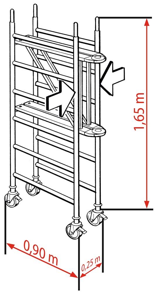 Fahrgerüst, klappbar, Arbeitsfläche 1900x650 mm, Standhöhe 800 mm, Gerüsthöhe 1800 mm
