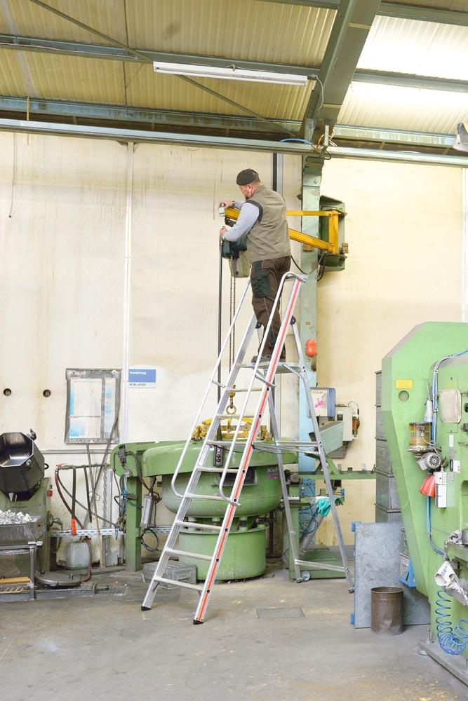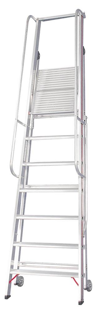 Plattformleiter R13 mit Kipprollen und langem Handlauf, 12 Stufen, Standhöhe 2,80 m, 80 mm Stufentiefe, Gewicht 24,5kg