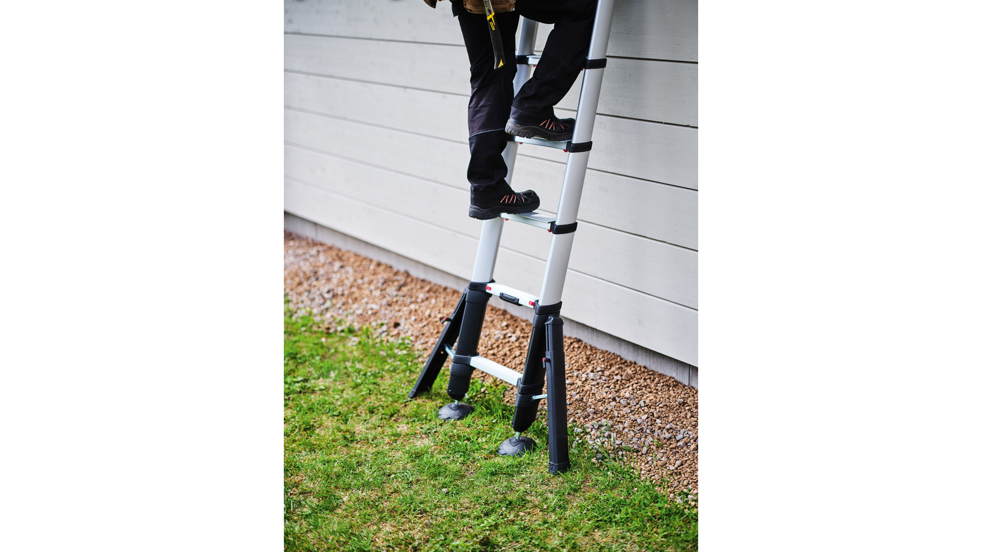 ∙ Praktisch, flexibel und enorm platzsparend - die Problemlösung, wenn wenig Platz zur Verfügung steht ∙ Zentrales Entriegeln mit nur einem Handgriff ∙ Leichtgängiges, sicheres Ein- und Ausfahren ∙ 80 mm breite Stufen aus Aluminium ∙ Anlegegummis am oberen Holmende schützen empfindliche Flächen und reduzieren die Gefahr zu verrutschen · Sicherer Stand mittels transportoptimierter Klappausleger · Bequeme ergonomische Leiterbreite · Eloxierte Holme verhindern schmutzige Hände durch Aluminiumabrieb∙ Stabile Traverse für hohe Standsicherheit · Nach EN 131 · Gem. TRBS 2121-2 als Arbeitsplatz und Verkehrsweg verwendbar