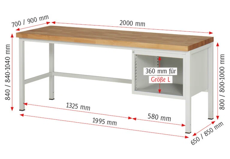 | Typ/Modell | Werkbänke mit Unterbau |