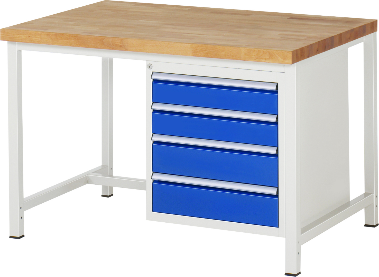 Werkbank Modell 8162 schwarz, BxTxH 1250x900x840 mm, Buche-Massiv Arbeitsplatte 40 mm, 4 Schubladen mit Vollauszug 100 % und SoftClosing