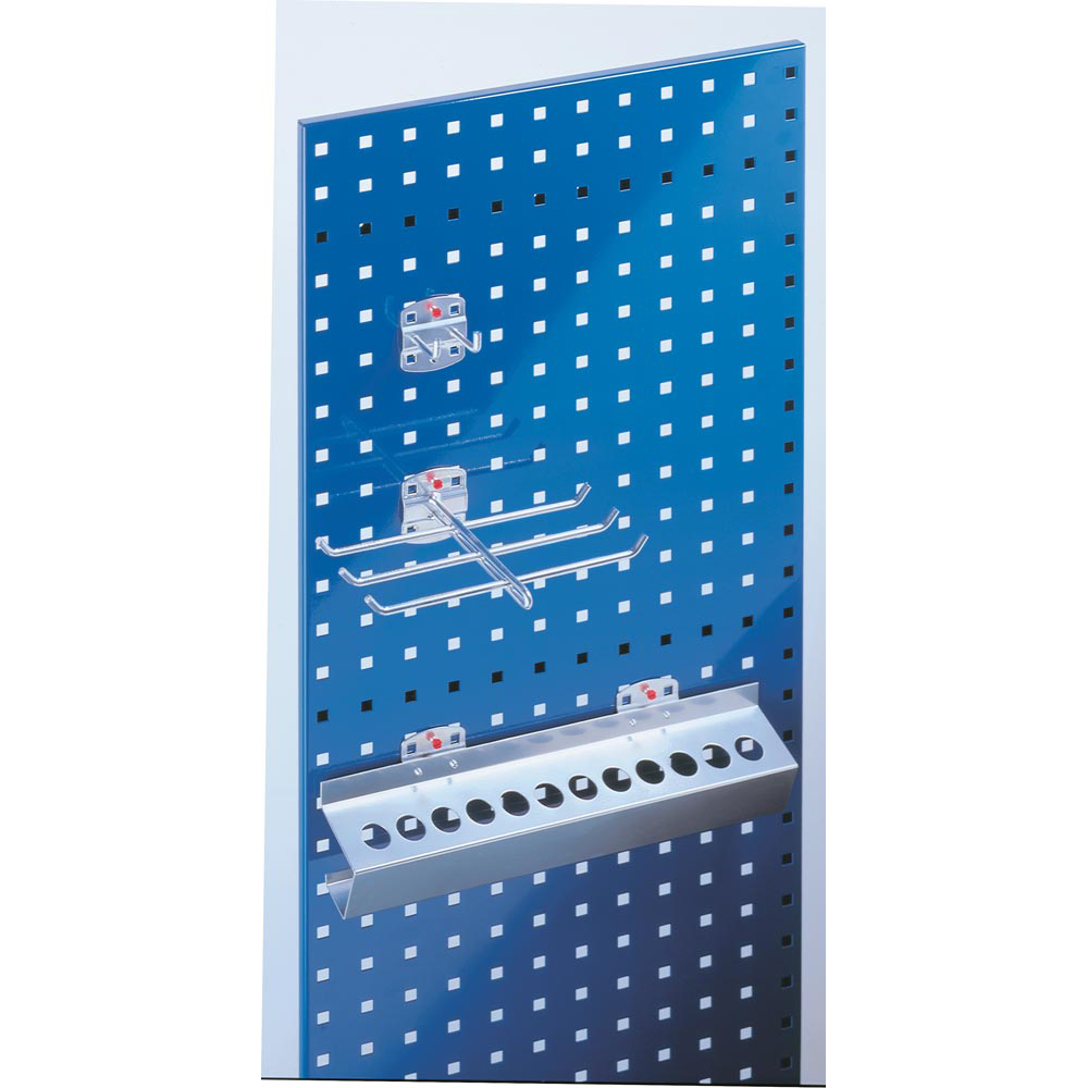 Lochplattensysteme ... schaffen Ordnung im ArbeitsprozessDer systematische Weg zur Ordnung. Von der einzelnen Lochplatte bis zumTrennwandsystem. Beliebig erweiterungsfähig, in 4 Abmessungen senkrecht und waagerecht verwendbar und kombinierbar mit den Schlitzplatten.∙ Lochplatten aus 1,25 mm starkem Stahl- blech, rundum abgekantet und rückseitig mit kräftigen, geprägten Unterzügen ver- stärkt∙ Schlag- und kratzfeste Kunststoff- beschichtung in 13 RAL-Farben∙ Lochmaß 10 x 10 mm, Lochabstand 38 mm (Mitte bis Mitte Vierkantloch) · Vorteile: · Werkzeuge sind am Arbeitsplatz sichtbar und griffbereit · Weniger Materialschwund · Sie können mit Farben Prozeße und Arbeitsbereiche kennzeichnen (Ordnungsfarbensystem)