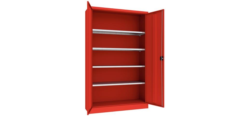 Aktenschrank - Vollblechtüren - 1.950x1.200x400 mm (HxBxT) - 4 Einlegeböden verzinkt - Zylinderschloss - feuerrot