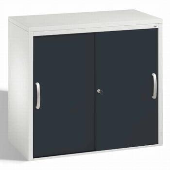 Aktenschrank mit Schiebetüren, Büroschrank, Stahlschrank, 1 Fachboden, Korpusfarbe lichtgrau, Frontfarbe schwarzgrau, 720 x 800 x 400 mm (HxBxT)