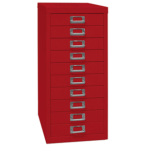 Schubladenschrank aus Stahl, BxTxH 279x380x590 mm, 10 Schubladen 51 mm, DIN A4, kardinalrot