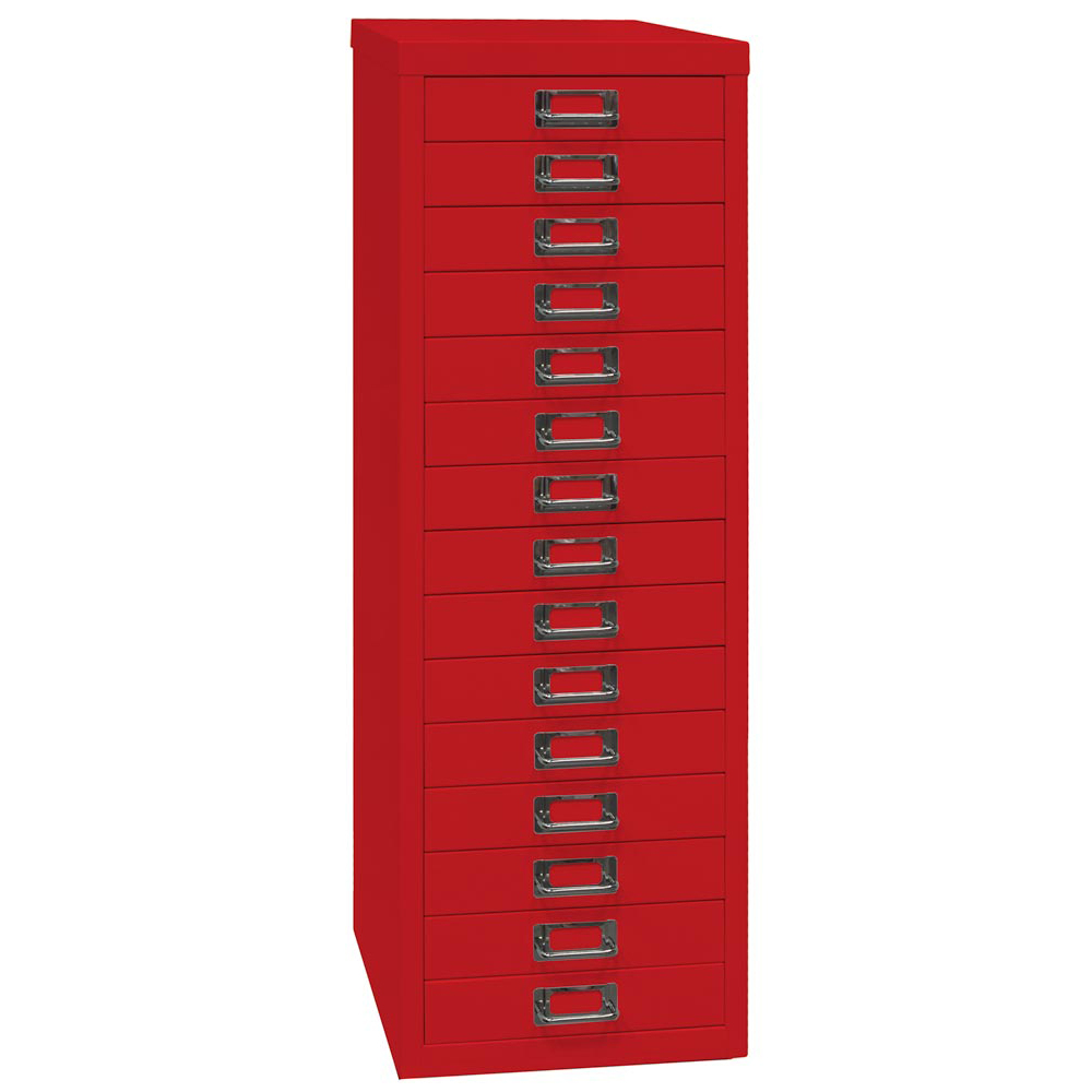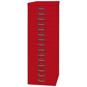 Schubladenschrank aus Stahl, BxTxH 279x380x860 mm, 15 Schubladen 51 mm, DIN A4, kardinalrot