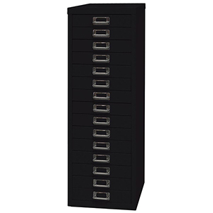 Schubladenschrank aus Stahl, BxTxH 279x380x860 mm, 15 Schubladen 51 mm, DIN A4, schwarz