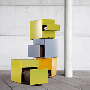 Rollcontainer mit seitlicher Griffleiste ∙ Stahlcontainer in modernem Design mit erheblichem Preisvorteil ∙ Seitliche Griffleisten· Doppelauszugsperre · Hängeregistraturauszug mit 5. Rolle zur Kippsicherung· Zentralschloss mit 2 Schlüsseln∙ 4 unsichtbare Lenkrollen