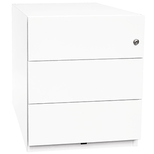Rollcontainer mit seitlicher Griffleiste ∙ Stahlcontainer in modernem Design mit erheblichem Preisvorteil ∙ Seitliche Griffleisten· Doppelauszugsperre · Hängeregistraturauszug mit 5. Rolle zur Kippsicherung· Zentralschloss mit 2 Schlüsseln∙ 4 unsichtbare Lenkrollen
