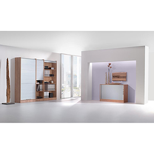 ∙ Die optimale Schranklösung bei beengten Raumverhältnissen · Vielfältige Unterbringungsmöglichkeiten ohne störende, in den Raum ragende Türen ∙ Korpus mit beidseitig melaminharzbeschichteten Oberflächen, blend- und reflexfrei, pflegeleicht und abriebfest ∙ Rollladenfront aus leichtlaufenden, PVC-freien Kunststofflamellen mit einem Gewichtsausgleich, der den Rollladen beim Öffnen und Schließen in jeder Position hält ∙ Querrollladenschrank einseitig nach links öffnend, Hochrollladenschränke nach oben öffnend ∙ Abschließbar mit Sicherheits-Zylinderschloss inkl. 2 Schlüsseln