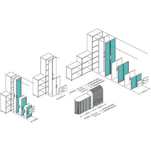 ∙ Optimale Raumnutzung, alle Regale und Schränke können im Baukastensystem zu einer Schrankwand montiert werden