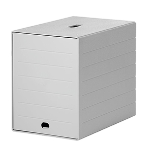 · Aus Polystyrol · Offene Schubladen · Staubschutz durch versenkbare Frontplatte · Stapelbar · Zur Nutzung auf dem Schreibtisch und zur Untertisch- oder Wandmontage