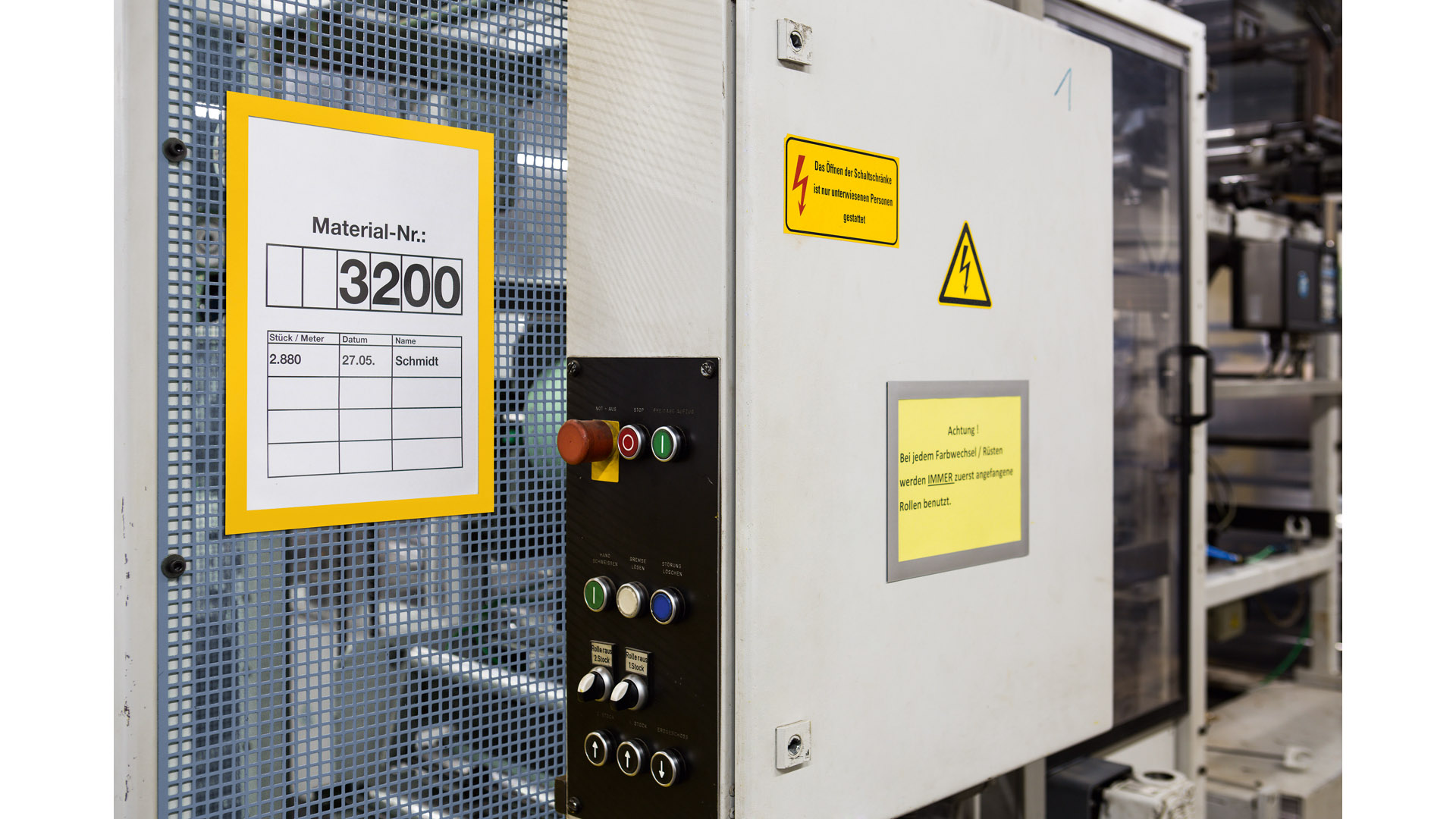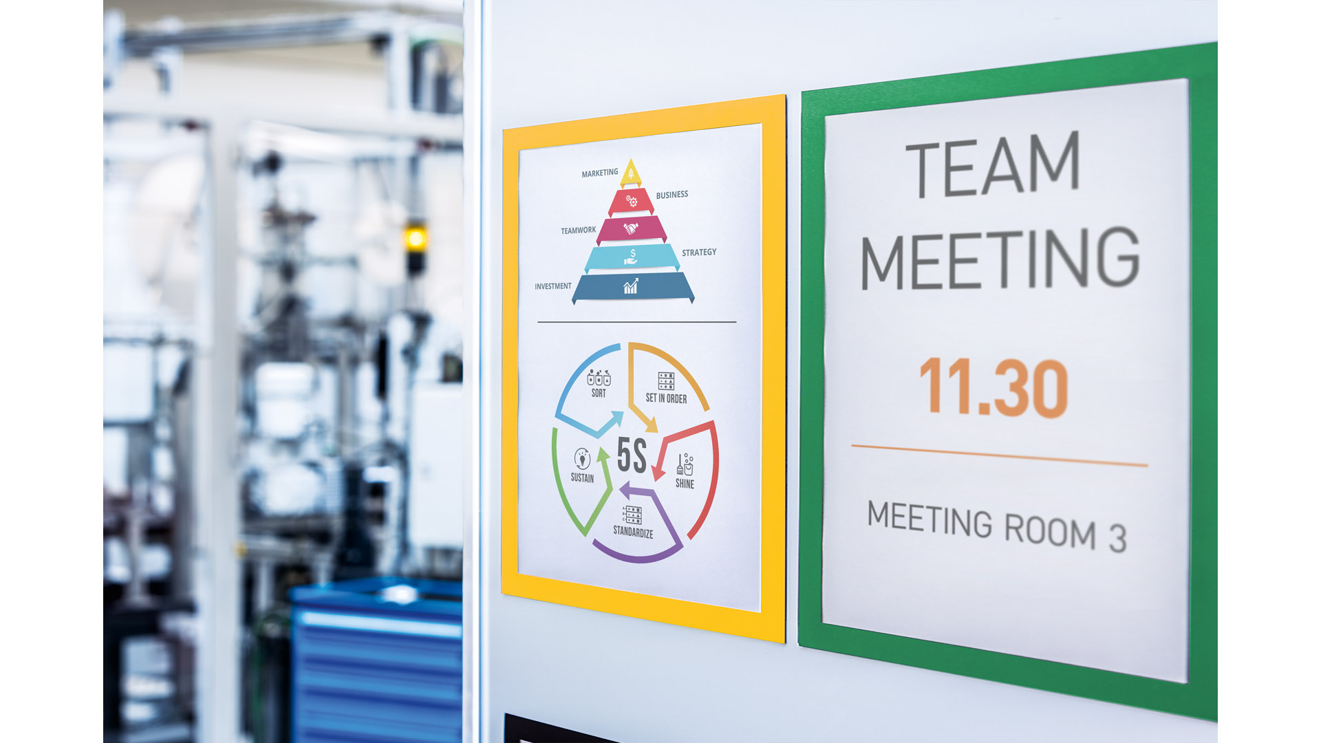 Farbiger Rahmen ideal zur Aufnahme von Betriebsanweisungen in Lager und Betrieb