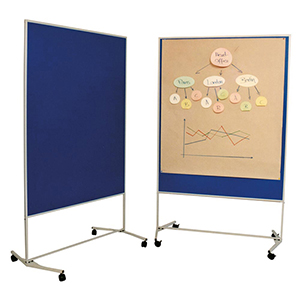 Moderationswand Economy, Stoffbezug blau, Moderationsfläche BxH 1200x1500 mm, Gesamthöhe 1960 mm