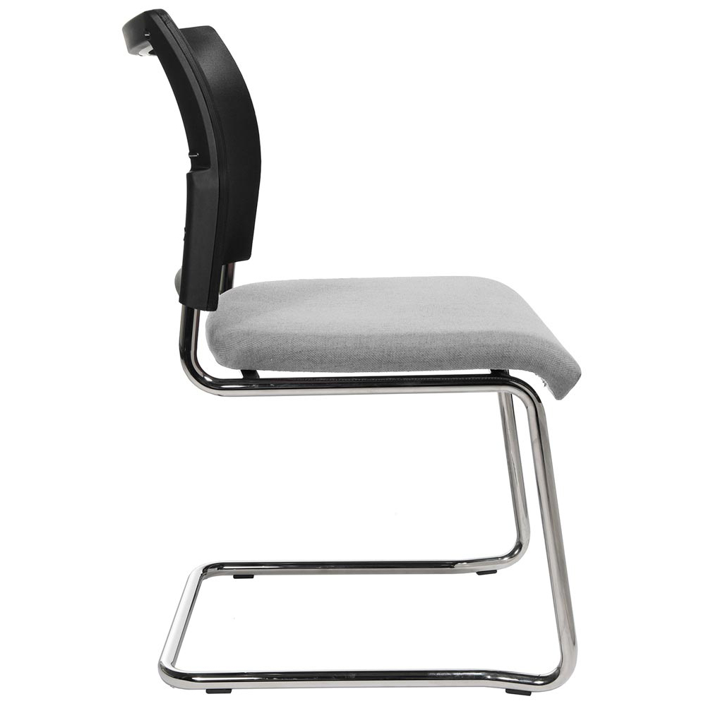 · Ergonomisch geformte Rückenlehne mit atmungsaktiver Netzbespannung und schwarzem Kunststoffrahmen · Bequem gepolsteter Muldensitz mit abgerundeter Vorderkante · Verchromtes Schwingergestell aus Rundrohr Ø 22 mm · Kunststoff-Fußgleiter · Stapelbar bis zu 2 Stühlen · Armlehnen optional gegen Aufpreis lieferbar · VE 2 Stück