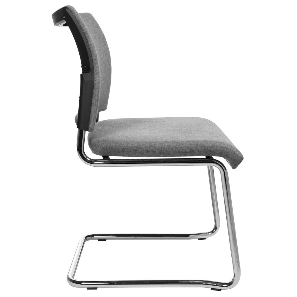 · Ergonomisch geformte und gepolsterte Rückenlehne, Rückseite mit kaschiertem Stoff · Bequem gepolsteter Muldensitz mit abgerundeter Vorderkante · Verchromtes Schwingergestell aus Rundrohr Ø 22 mm · Kunststoff-Fußgleiter · Stapelbar bis zu 2 Stühlen · Armlehnen optional gegen Aufpreis lieferbar · VE 2 Stück