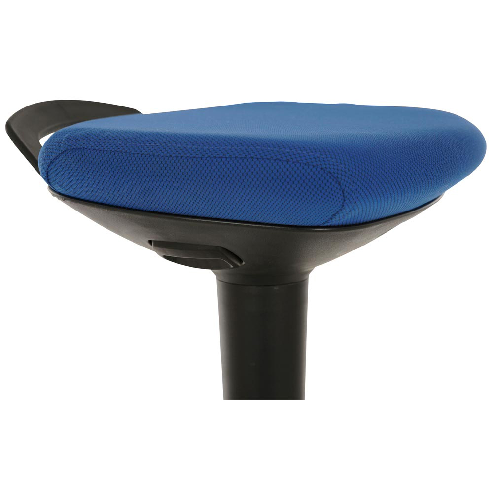 • Multibewegliche Stehhilfe mit Gasdruckfeder • Höhenverstellung von 600-840 mm • Ergonomisch geformter Komfortsitz • Die Stehhilfe schwingt in alle Richtungen und passt sich der Körperhaltung optimal an • Tragegriff zur Unterstützung des Standortwechels • Belastbarkeit bis 110 kg • Die rutschfesten Pads unter dem Fuß bieten sicheren Halt auf verschiedenen Bodenbelägen • blauer Sitzbezug