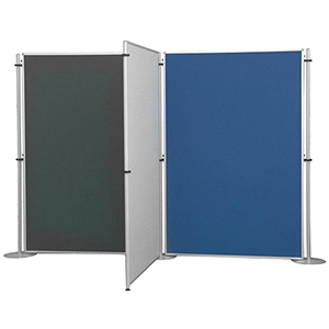 Stellwandsystem Wandelemente Textil · Ein flexibles Stellwandsystem, das nahezu überall im Unternehmen einsetzbar ist, z. B. in der Verwaltung, im Qualitätsmanagement, für die Arbeitssicherheit oder in der Produktion · Mit diesem System ordnen, trennen oder gestalten Sie jede Arbeitssituation · Einsetzbar als einzelstehendes Element oder als individuelle Konfiguration verschiedener Module und Materialien · Flexibler Sichtschutz zwischen Arbeitsplätzen, als raumteilende Arbeitswand, als Informationscenter für Präsentationen oder Ausstellungen · Auch über Eck stellbar · Wandelemente mit umlaufendem Aluminiumrahmen · Vertikal oder horizontal einhängbar · Höhenverstellbar mit verschiebbaren Metallhaken · Stative in verschiedenen Ausführungen und 2 Höhen als Zubehör wählbar · Beidseitige Textilauflage auf leicht pinnbarem Trägermaterial Weitere Abmessungen und Stofffarben auf Anfrage lieferbar.
