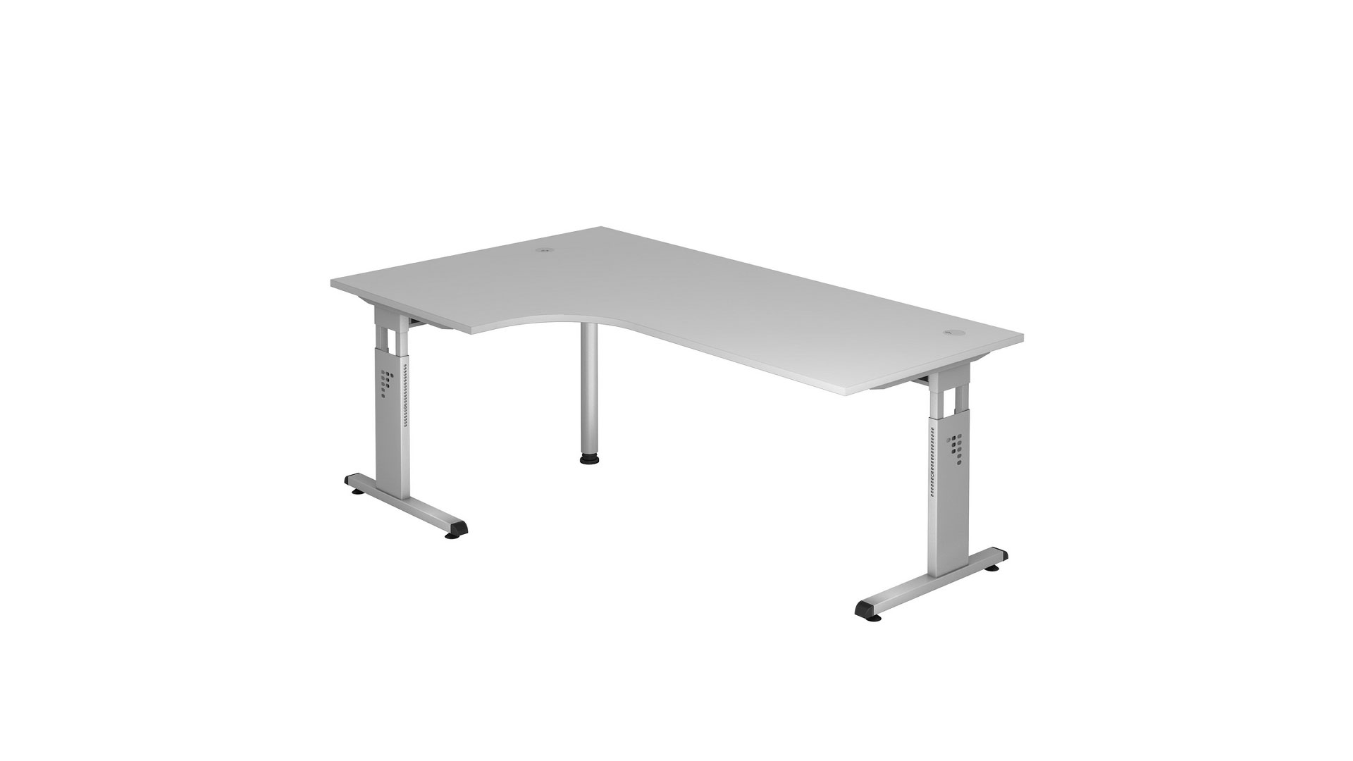 Eckschreibtisch, höhenverstellbar, BxTxH 2000x800-1200x650-850 mm, C-Fuß-Gestell, Platte lichtgrau