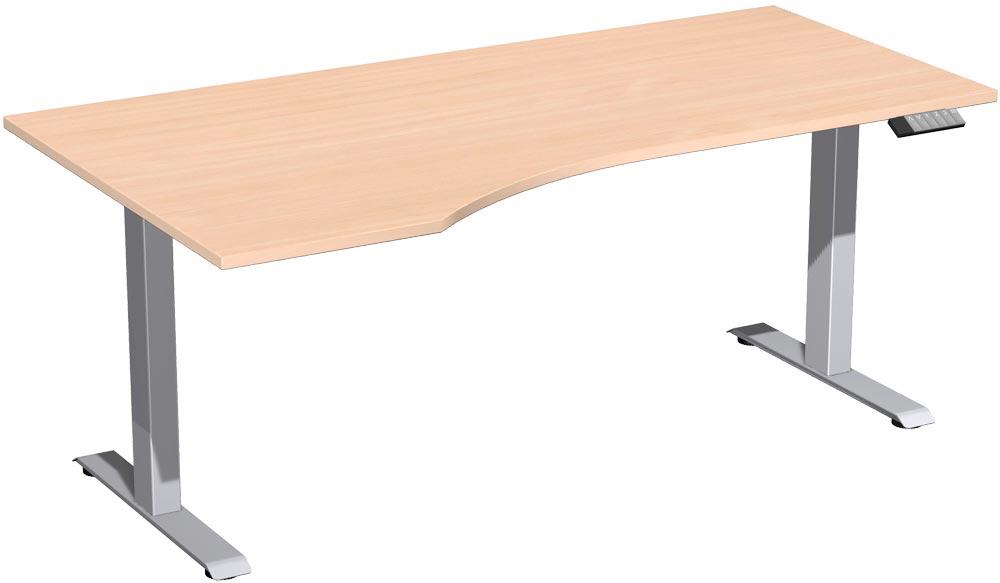 PC-Schreibtisch, elektr. höhenverstellbar, BxTxH 1800x800/1000x630-1280 mm, links 425 mm, Melamin-Platte 25 mm, buche/silber
