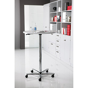 Produktinformationen "Säulentisch, Durchm.xH 800x720-1140 mm, Gasdruckfeder, Tischplatte 25 mm lichtgrau, Gestell chrom, inkl. Gleiter und 5 Rollen, 2 mit Feststeller"