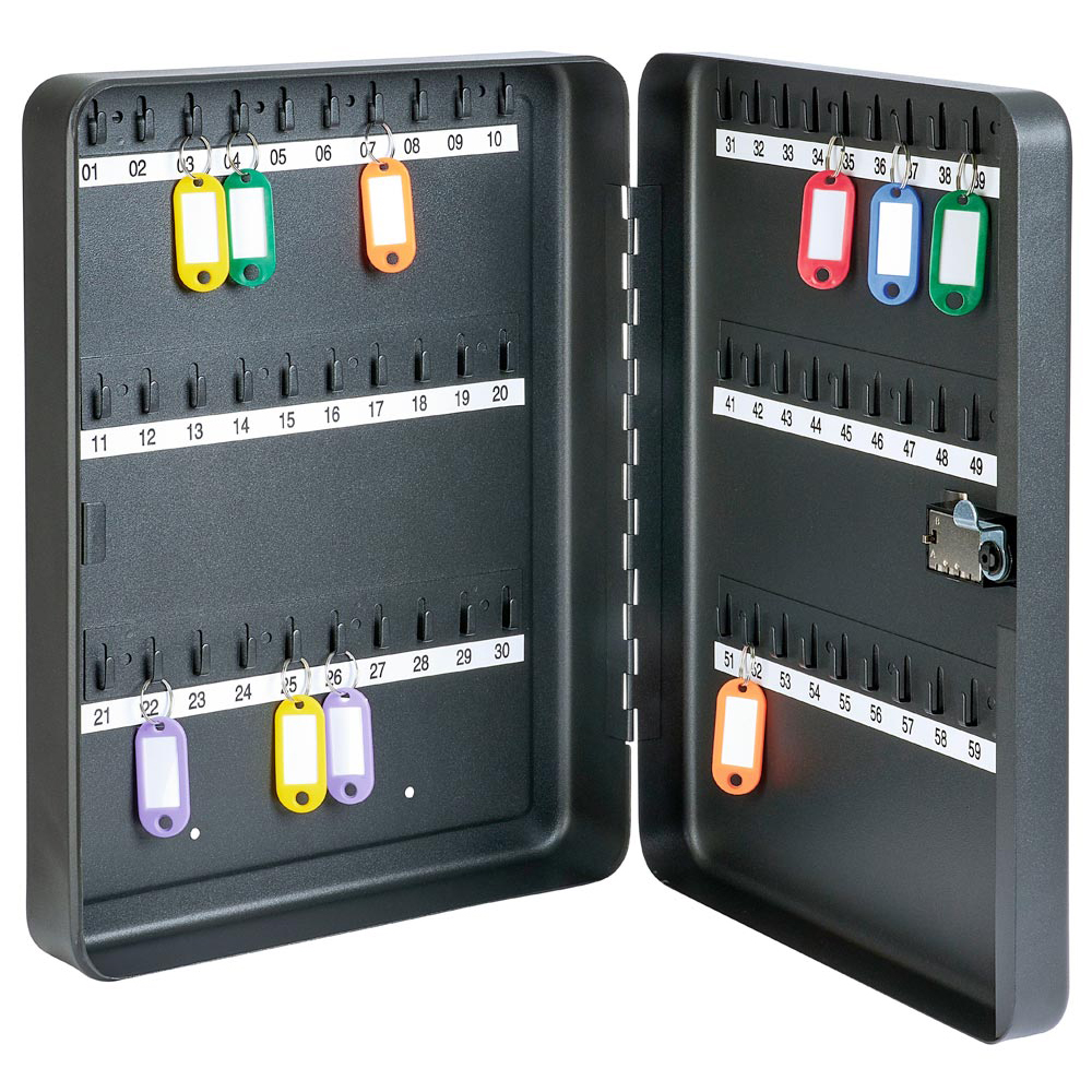 ∙ Schlüsselkasten aus Stahlblech ∙ Farbe Anthrazit ∙ Mit manuellem Zahlenschloss ∙ Mit nummerierten Haken (ohne Schlüsselanhänger