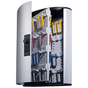 Schlüsselkasten, für 72 Schlüssel, BxTxH 302x118x400 mm, Zahlenschloss, metallic-silber