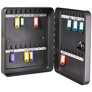 · Gehäuse aus Stahlblech · Lackierung in anthrazit · Zahlenschloss · Nummerierte Haken (Schlüsselanhänger nicht im Lieferumfang enthalten) · Inkl. Befestigungsmaterial