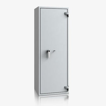 Dieser massive Wertschutzschrank ist ausgestattet mit einem Doppelbart-Hochsicherheitsschloss und einem starken, vierseitigen Bolzenriegelwerk. Der Korpus ist allseitig mehrwandig 83 mm stark. Die umlauffende Feuerfalz schützt den Inhalt des Schrankes vor leichten Bränden (Feuerhemmend).
