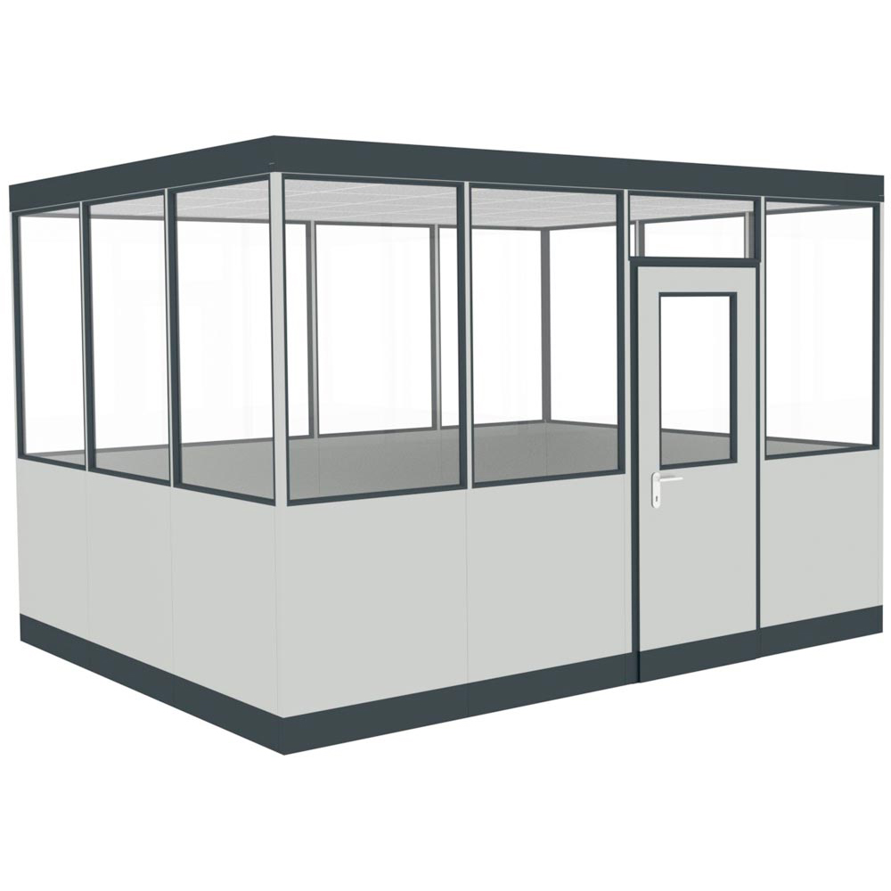 Hallenbüro, 4-seit. freistehend, ohne Boden, 2 Leuchten, BxTxH 3045x3045x2630 mm, RAL 9002 grauweiß, Rahmen RAL 5010 enzianblau