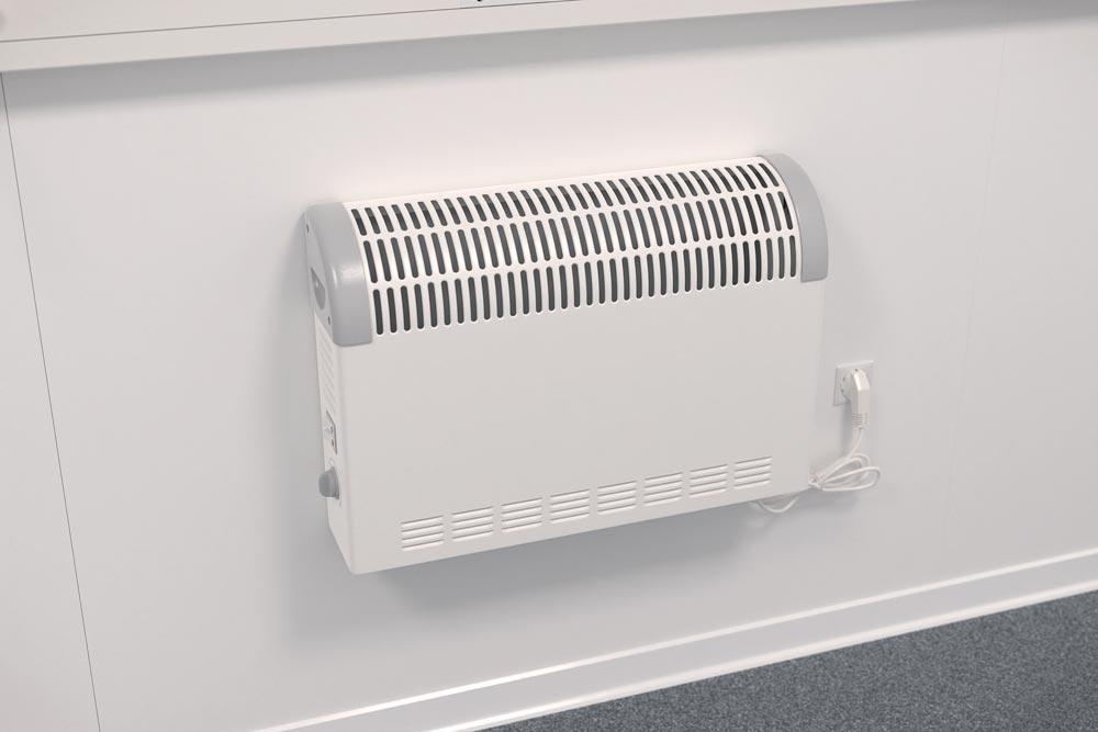 · 1 x Elektro-Wandkonvektor 2 kW mit stufenlosem Temperaturwähler und Thermostat