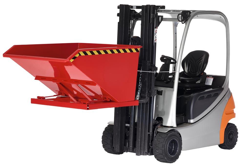 Muldenkippbehälter, Scherenmechanik, Vol. 0,3 cbm, Traglast 900 kg, BxTxH 1180x830x680 mm, RAL 3000 feuerrot