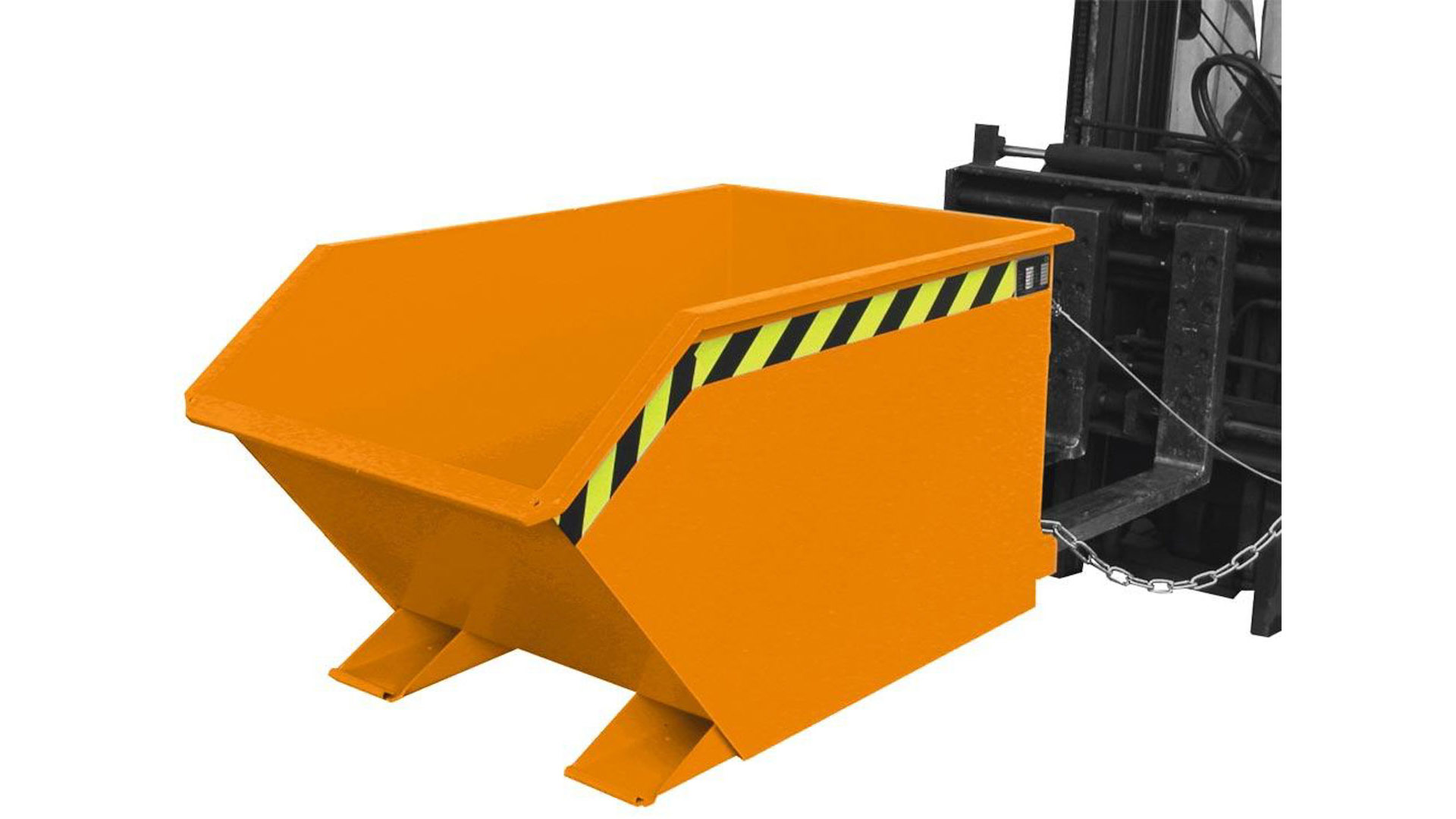 Späne-Selbstkippbehälter, Volumen 0,3 cbm, LxBxH 1440x680x580 mm, lackiert RAL 2000 orange