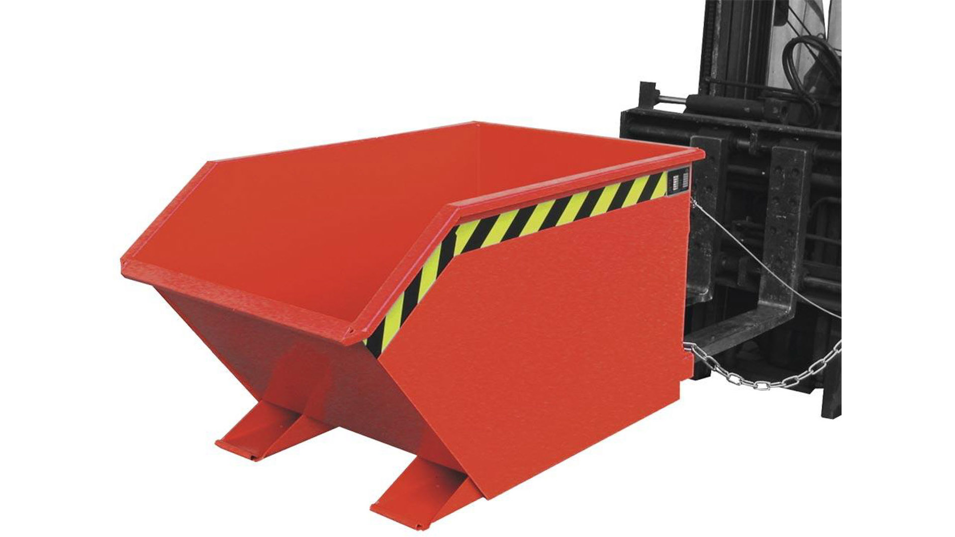 · Robuste Stahlblechkonstruktion, 3 mm Wannenblech mit umlaufend Randprofil · Siebblech und Ablasshahn 1" zum Trennen der Flüssigkeiten von Feststoffen · Öl- und wasserdicht · Günstiger Lastschwerpunkt · Kippen in jeder Höhe per Seilzug vom Staplersitz aus · Stabiler Grundrahmen mit Einfahrtaschen · Sicherung gegen Abrutschen und unbeabsichtigtes Auskippen