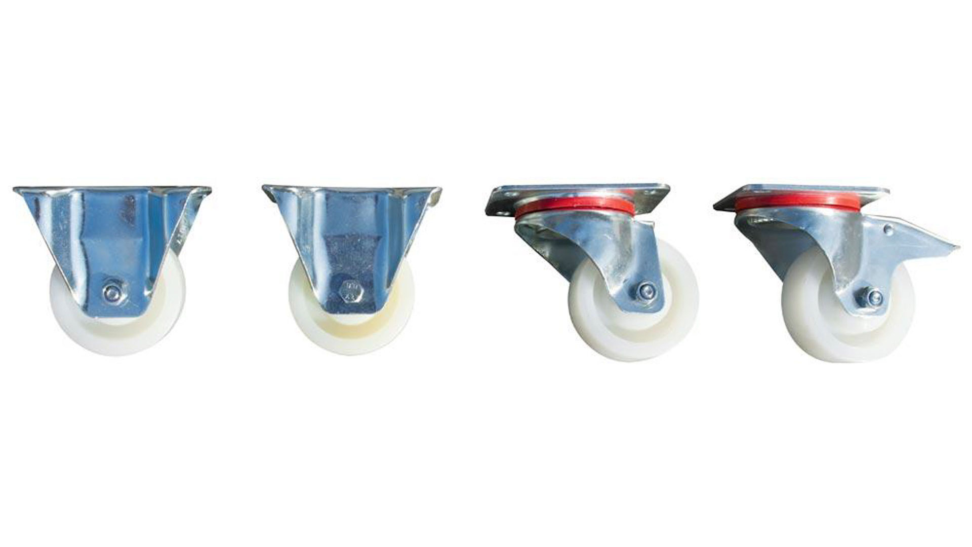 Produktinformationen "2 Lenk- und 2 Bockrollen aus Polyamid, Durchm. 100 mm, Bauhöhe 125 mm"