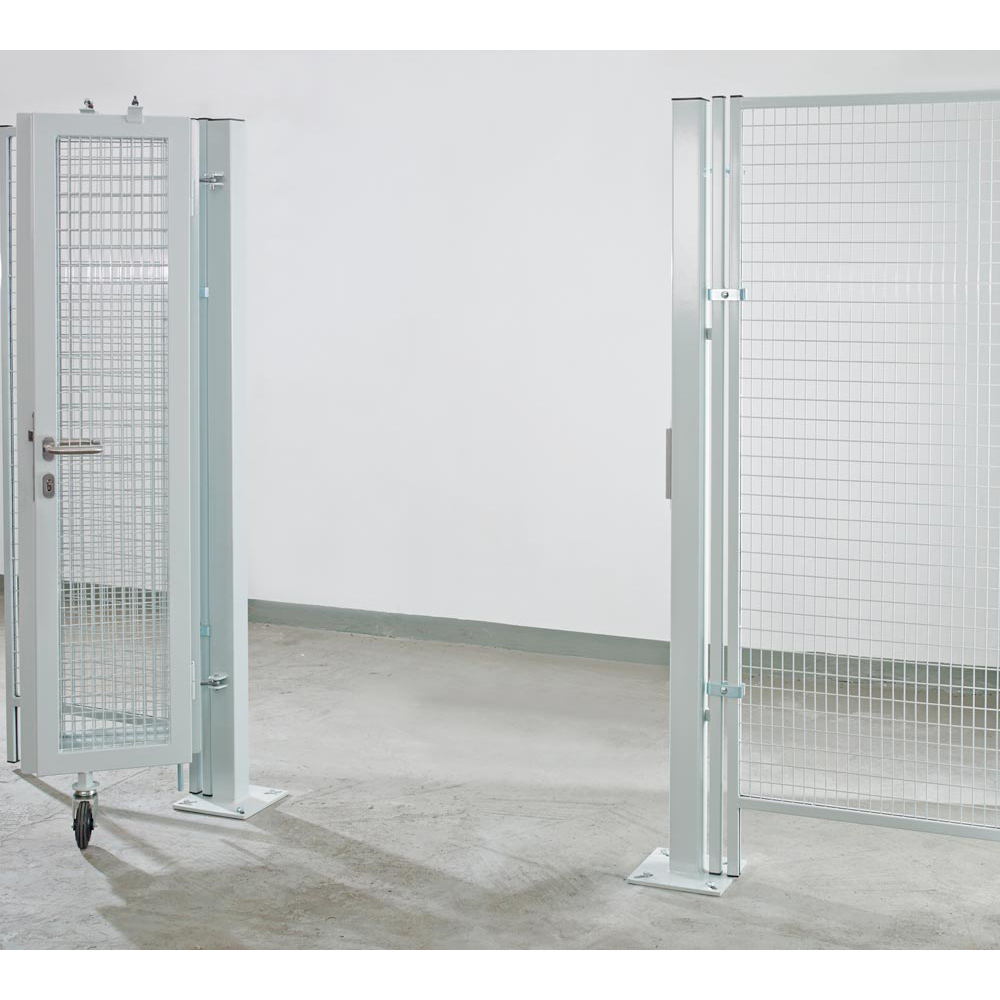 Trennwandschutzgitter Falttore ∙ Variabel und vielseitig einsetzbares Baukastensystem ∙ Maschenweite 40 x 40 x 3,8 mm ∙ Die solide Flachgitter-Schweißkonstruktion (C-Profil) garantiert höchste Sicherheit und ist im Selbstbau schnell und einfach montiert ∙ In Lager und Betrieb vielseitig einsetzbar als Absperrung, Magazinwand und Raumteiler ∙ Bodenabstand 100 mm · Optimaler Schutz in Bereichen mit wenig Platz · Flachgittermaschung 40 x 40 mm in Rahmenprofil 60/40 mm eingefasst · Direkt in das Trennwandsystem integrierbar · Leichtes Öffnen und Schließen durch drehbare Räder · Komplett ausgestattet mit Torrahmenschloss und Drückergarnitur · Inkl. stabiler QR-Pfosten und verstellbarer Torbänder · Farbe RAL 7037 staubgrau Füllungen · Durch die Profilrahmen sind verschiedene Füllungen wie Acrylglas, Blech, beschichtete Spanplatte, das standardmäßige Drahtgitter, sowie Kombinationen der verschiedenen Füllungen möglich - bitte fragen Sie uns! · Ausführung einseitig mit 2 Flügel Standard-Lieferfarbe RAL 7037 staubgrau Auf Anfrage, ohne Aufpreis RAL 5007 brillantblau, RAL 5018 türkisblau, RAL 5002 ultramarinblau, RAL 5010 enzianblau, RAL 7035 lichtgrau, RAL 5012 lichtblau Weitere RAL-Farben sowie feuerver